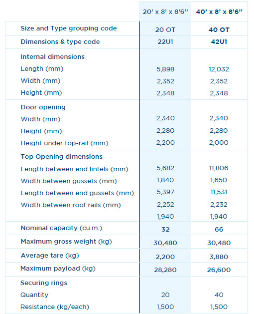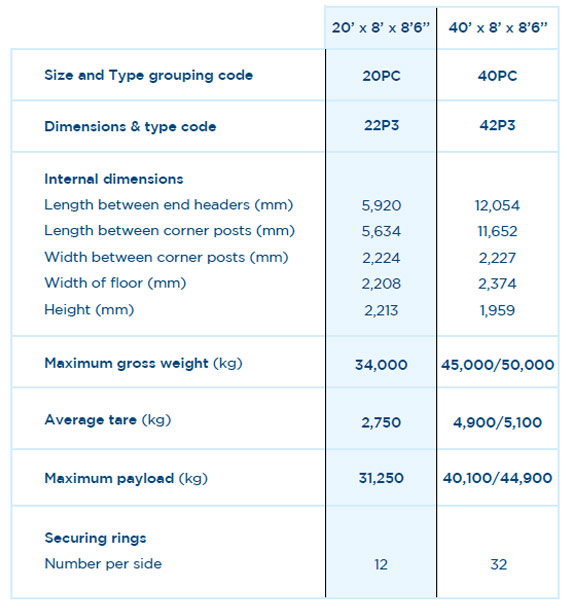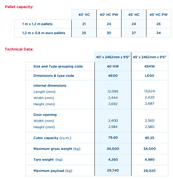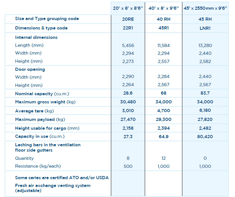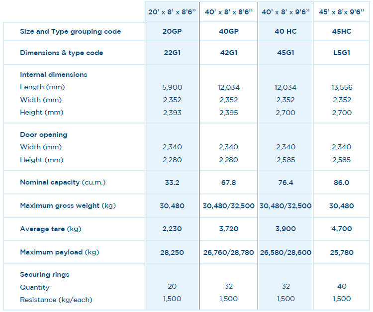 * Ces dimensions sont données à titre indicatif et diffèrent selon les compagnies maritimes