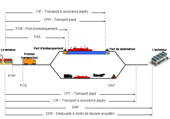 Les Incoterms est une stipulation d’un contrat de vente qui fixe la livraison et la répartition des coûts nécessaires à l'acheminement de la marchandise ainsi que les transferts de risques de celle-ci.